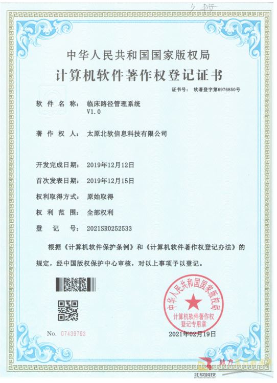 熱烈祝賀公司獲得《臨床路徑管理系統》軟件著作權!