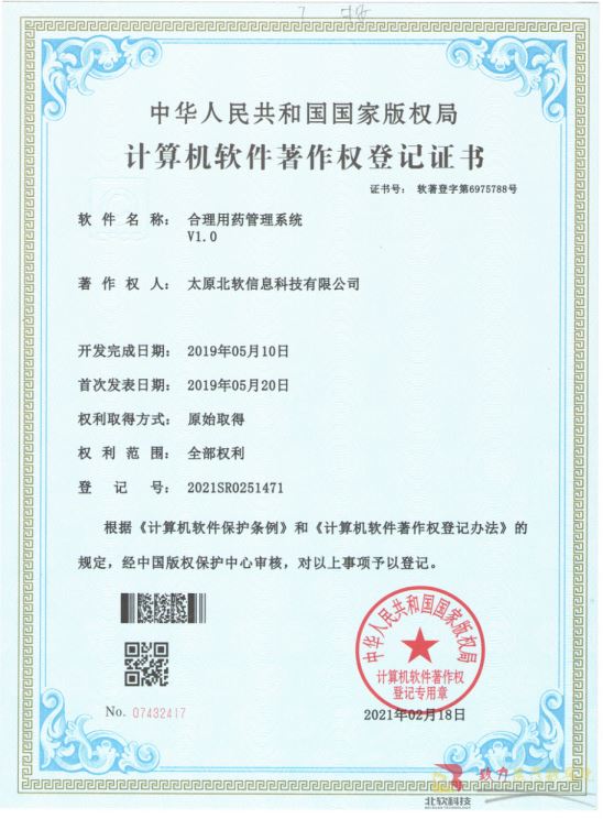 熱烈祝賀公司獲得《合理用藥管理系統》軟件著作權!